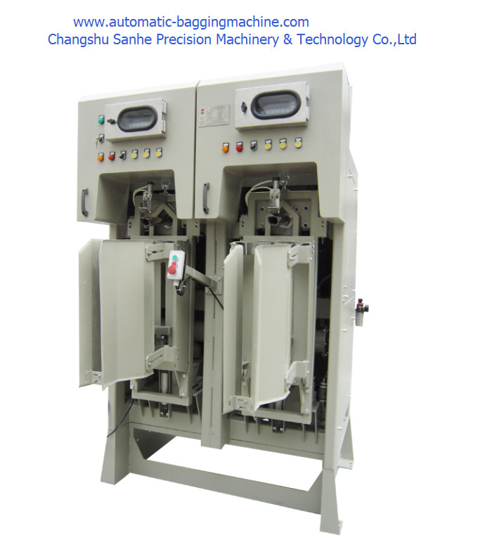 La empaquetadora cuantitativa del polvo es conveniente para el empaquetado cuantitativo del polvo, del polvo y de los materiales del polvo en industrias de la sustancia química, de la comida, agrícolas y de la línea lateral de los productos, tales como leche en polvo, almidón, pesticida, veterinaría, mezcla preparada de antemano, añadido, condimento, alimentación, preparación enzimática, etc.; la empaquetadora cuantitativa del polvo es una combinación de máquina y de instrumento, controlada por el solo microordenador del microprocesador, con el relleno cuantitativo, automático automático y el ajuste automático del error de medida etc.