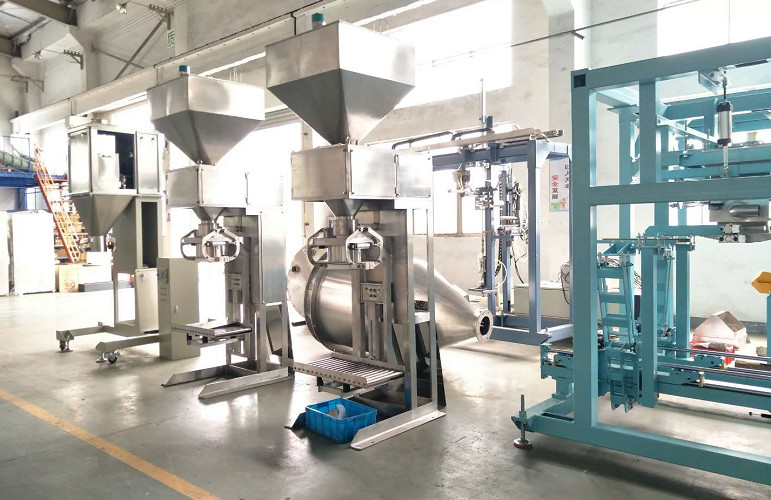 La escala que embala electrónica consiste en el pesar de la unidad, máquina de coser, transportando el dispositivo, sistema neumático, sistema del retiro de polvo, control que embala cuantitativo, el etc. el proceso de pesaje entero es controlado por el PLC y terminado automáticamente.