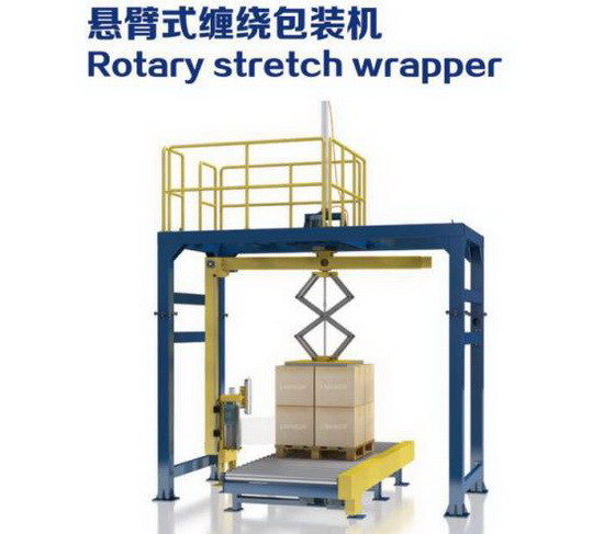 La bandeja del cargo pasa a través del transportador de la posición que espera del transportador. Cuando la vacante de la posición de la máquina de enrrollamiento se detecta, las mercancías paran, y el alzamiento automático neumático (opcional) se adopta. La máquina de enrrollamiento carga automáticamente la película y envuelve la película superior. Se acaba el proceso de enrrollamiento se realiza según el procedimiento determinado hasta la bobina y la película está quebrada automáticamente. Entonces las mercancías se transportan a la estación de dos transportadores de rodillo a su vez, para carretilla elevadora que espera, empaquetando acabaron.