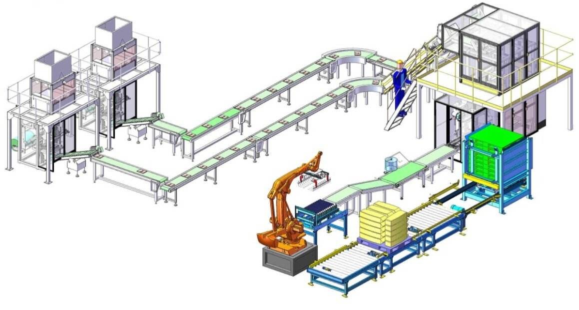 C. Generalmente, una línea del embalaje y el empaletar incluye: Gabinete eléctrico, máquina de coser, transportador de costura, máquina del empuje del bolso, transportador de Reshapen, detector de metales, inspector de peso, bolso Rejecter, transportador de la impresora de chorro de tinta, impresora de chorro de tinta, revista de plataforma, transportador que empalieta, robot, embaladora, transportador que empalieta Finished.
