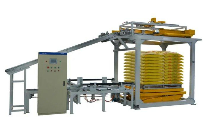 El palletizer apila los materiales contenidos (en cartones, tejió bolsos, barriles, el etc.) o automáticamente embalados/desempaquetados los artículos de la regular-forma en la plataforma (de madera) según cierto arreglo. Después de apilar varias capas, la plataforma llena será transportada hacia fuera para el embalaje adicional o al almacén por una carretilla elevadora. Es conveniente para el amontonamiento de bolsos y de cajas de arreglo escalonado en proceso de después-empaquetado.